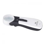The SCHWEIZER Ergo-Lux MP Mobil 4X / 12D with 35mm lens features SMD LED lighting (white clear light- 6500K light temperature) with two brightness levels thanks to the Power Boost technology for added flexibility and versatility. The SMD LED light provides a bright, evenly dispersed and high contrast light.;The ergonomic design places emphasis on comfort and ease of use by using a rubberized grip for the thumb and forefinger and a larger, rounded handle to support the ball of the hand. The easy-glide switch provides audible and tactile feedback and completely eliminates flickering.;The aspheric lightweight magnifying lens is made of acrylic glass that is scratch-resistant. The lens provides a sharply defined, clear image that is further enhanced by the SMD LED lighting.;The Ergo-Lux MP Mobil line of hand-held magnifier’s have been engineered for low energy consumption and a long-lasting battery life. The battery compartment is designed for easy battery replacement with an attached lid. This magnifier uses three AAA batteries (included). Includes protective microfiber cloth pouch.