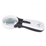 The SCHWEIZER Ergo-Lux MP Mobil 6X / 20D with 55mm lens features SMD LED lighting (white clear light- 6500K light temperature) with two brightness levels thanks to the Power Boost technology for added flexibility and versatility. The SMD LED light provides a bright, evenly dispersed and high contrast light.;The ergonomic design places emphasis on comfort and ease of use by using a rubberized grip for the thumb and forefinger and a larger, rounded handle to support the ball of the hand. The easy-glide switch provides audible and tactile feedback and completely eliminates flickering.;The aspheric lightweight magnifying lens is made of acrylic glass that is scratch-resistant. The lens provides a sharply defined, clear image that is further enhanced by the SMD LED lighting.;The Ergo-Lux MP Mobil line of hand-held magnifier’s have been engineered for low energy consumption and a long-lasting battery life. The battery compartment is designed for easy battery replacement with an attached lid. This magnifier uses three AAA batteries (included). Includes protective microfiber cloth pouch.