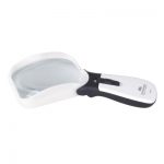 The SCHWEIZER Ergo-Lux MP Mobil 3X / 6D with 100x75mm angled lens features SMD LED lighting (white clear light- 6500K light temperature) with two brightness levels thanks to the Power Boost technology for added flexibility and versatility. The SMD LED light provides a bright, evenly dispersed and high contrast light.;The ergonomic design places emphasis on comfort and ease of use by using a rubberized grip for the thumb and forefinger and a larger, rounded handle to support the ball of the hand. The easy-glide switch provides audible and tactile feedback and completely eliminates flickering.;The aspheric lightweight magnifying lens is made of acrylic glass that is scratch-resistant. The lens provides a sharply defined, clear image that is further enhanced by the SMD LED lighting.;The Ergo-Lux MP Mobil line of hand-held magnifier’s have been engineered for low energy consumption and a long-lasting battery life. The battery compartment is designed for easy battery replacement with an attached lid. This magnifier uses three AAA batteries (included). Includes protective microfiber cloth pouch.