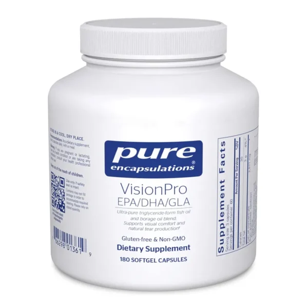 VisionPro EPA/DHA/GLA* supports natural tear production, healthy tear film composition and retention of eye moisture. A cross-sectional study of 32,470 women demonstrated a significant association between omega-3 fatty acid intake and ocular surface hydration. Several randomized controlled clinical trials have indicated that fish oils provide significant support for healthy tear function and associated visual comfort scores. Specifically, EPA and DHA support the coating of fluid that covers the eyes. These omega-3 fatty acids are incorporated into the lipid layer of the eye to maintain its fluidity and viscosity. By supporting the functional properties of the lipid layer, EPA and DHA promote retention of water in the underlying aqueous layer. EPA and DHA also promote healthy prostaglandin and cytokine balance to help protect the secretory function of the lacrimal glands. In addition, VisionPro EPA/DHA/GLA* provides 75 mg GLA per serving from cold-pressed borage oil. Several studies have demonstrated that GLA-rich oils provide unique support for mucin production, prostaglandin balance and healthy tear film characteristics.